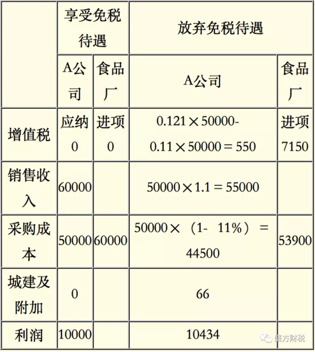 A公司为一蔬菜批发公司,2018年4月从农民手中收购蔬菜50000斤,购进价格为1元/斤,开具了农产品收购发票。目前A公司享受免税待遇,将蔬菜以1.2元/斤价格销售给食品厂生产蔬菜罐头。如果A公司放弃免税待遇,以不含增值税售价1.1元/斤、增值税0.121元/斤的价格将蔬菜销售给食品厂,并向其开具增值税专用发票。请问是否可行?